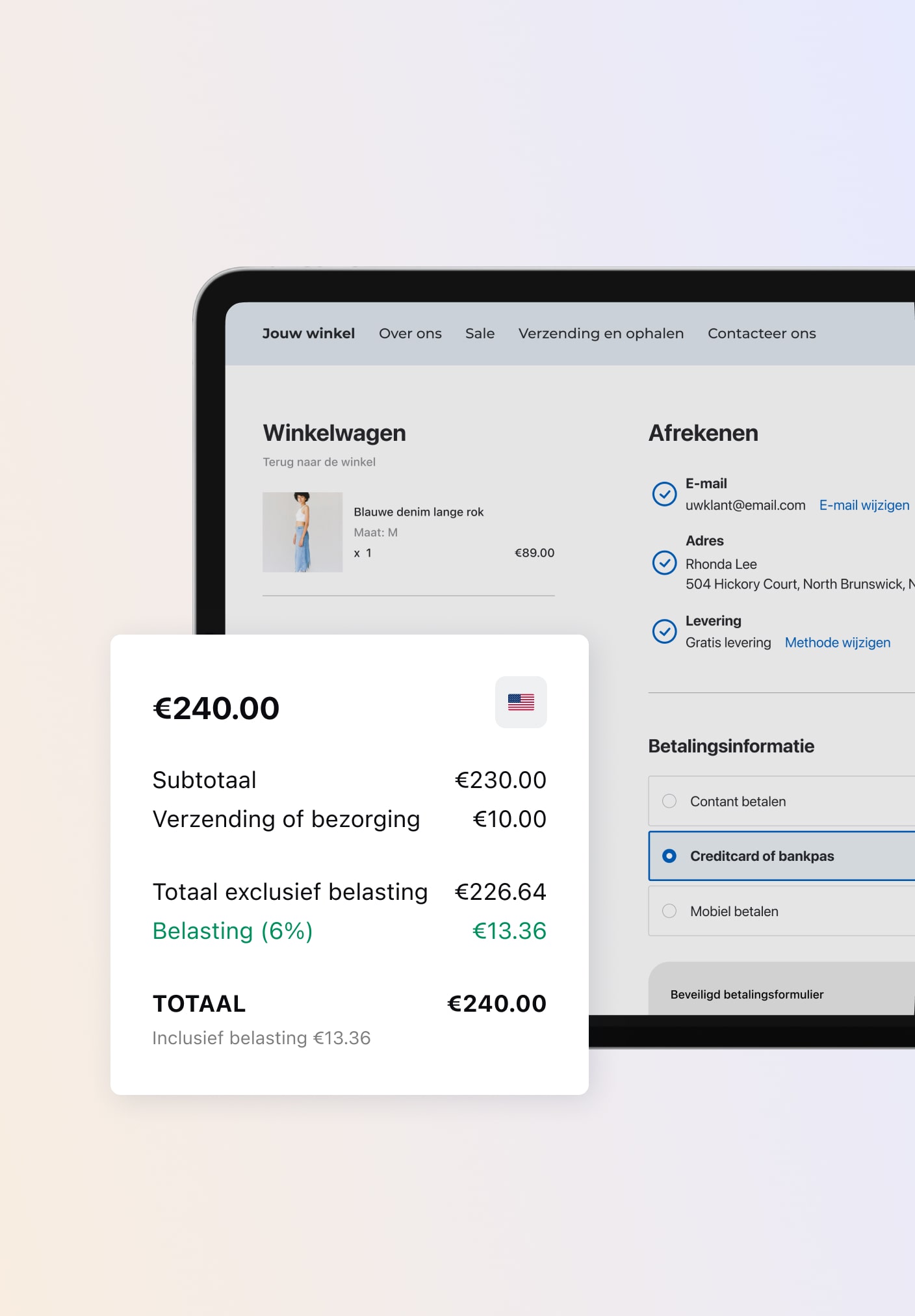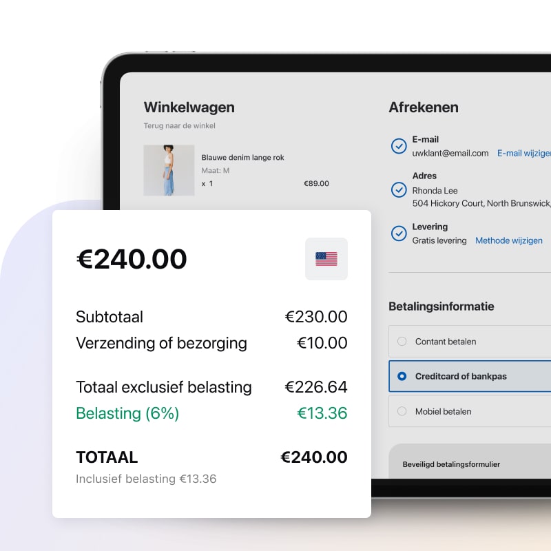 Belastingen hoeven geen gedoe te zijn. Bereken belastingtarieven automatisch en in realtime bij het afrekenen op basis van de winkel en de locatie van de klant.