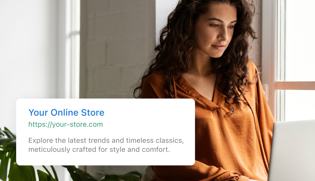 Improve your site's ranking in engines like Google, Bing, and Yahoo and generate traffic to your online store. By default, all Ecwid stores are optimized for search engines, so it’s easy to get started.