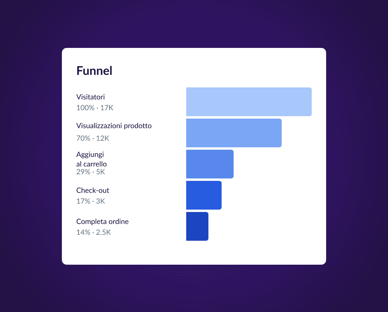 Misura le prestazioni di ogni fase del funnel, dalle visite alle pagine agli acquisti completati