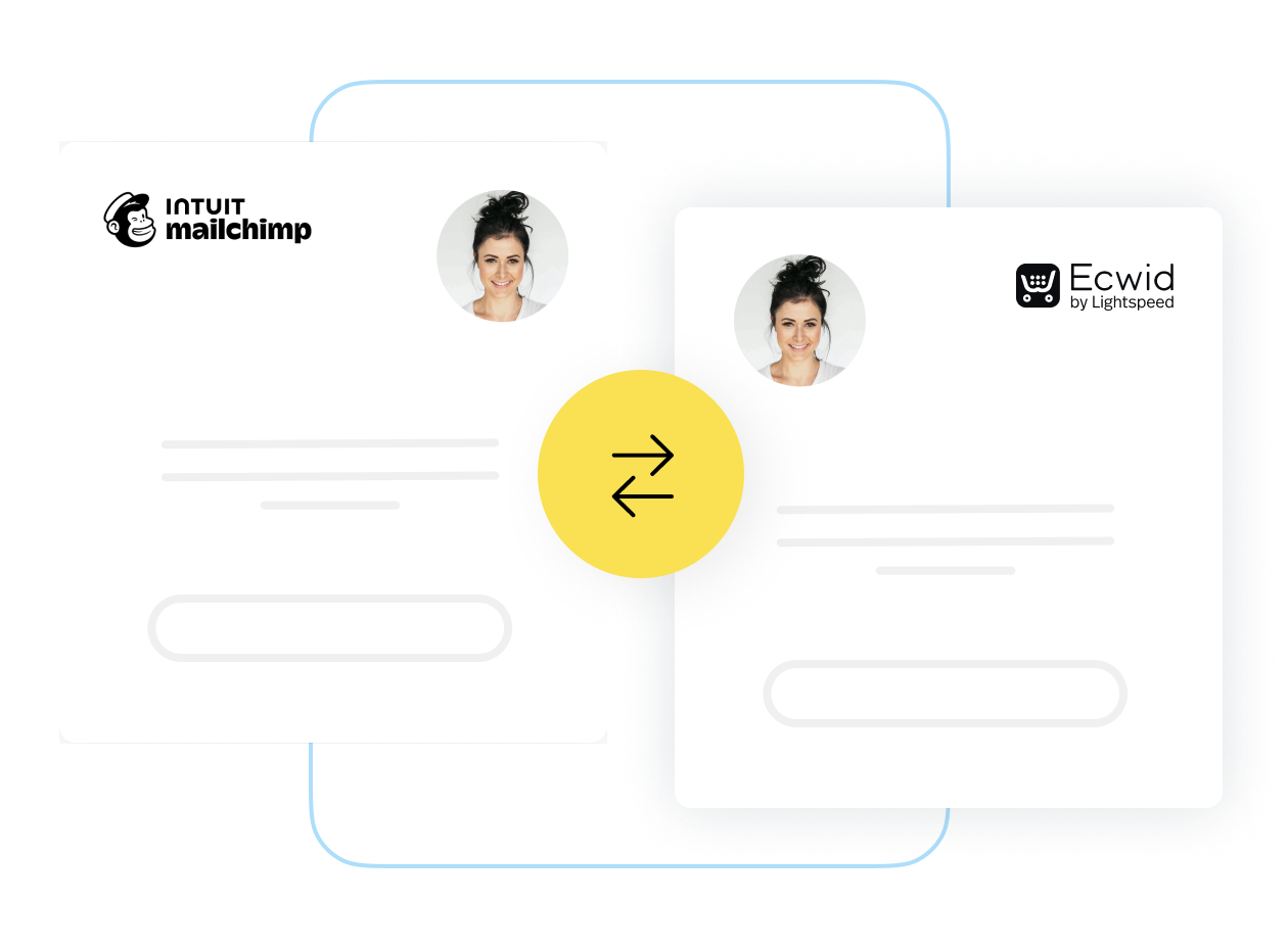 Deine Kundendaten fließen problemlos zwischen Ecwid und Mailchimp. Wenn also ein Kunde seine Daten in deinem Shop aktualisiert, werden diese Daten automatisch an Mailchimp weitergeleitet, damit deine E-Mail-Liste immer aktuell bleibt.