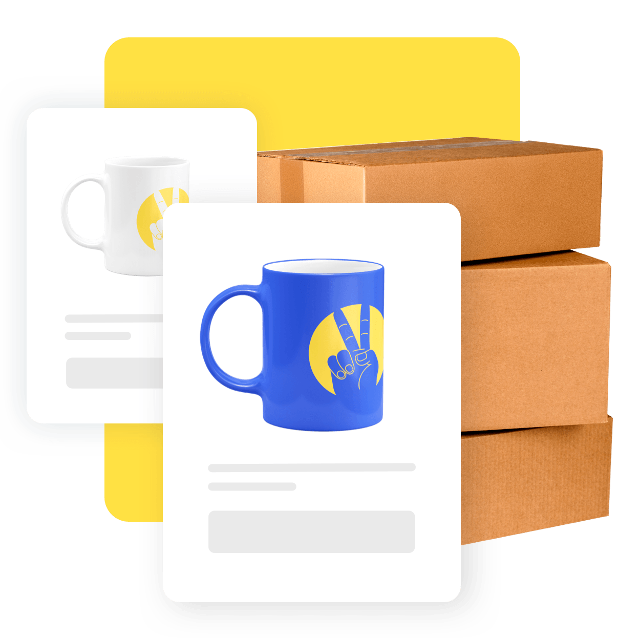 Verwandle deinen Shop in eine authentische Marke mit gut platzierten, individuellen Markendesigns. Nimm neue Designs in deinen Bestand auf, um neue Ideen auszuprobieren, ohne dass du dir Sorgen machen musst: Wenn sich deine T-Shirts nicht verkaufen, versuche es mit Aufklebern oder Tassen.