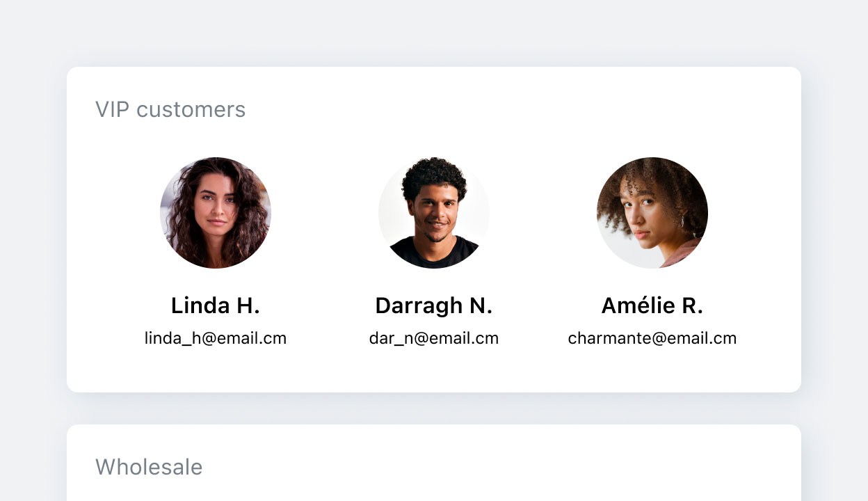 Upon customers making a purchase on your platform, Ecwid automatically creates a personalized customer account for them. You can later group accounts into categories and target them effectively.
